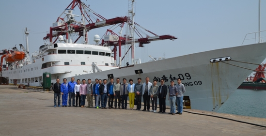 424日,中國科學院三亞深海科學與工程研究所(籌)海斗深淵先導專項辦公室,組織該專項參加大洋37航次相關科研人員一行14人,赴青島實地參觀考察“蛟龍號”母船——向陽紅09船,國家海洋局北海分局高級船長陸會勝,09船船長陳存本、實驗室主任馬波接待并詳細介紹了船舶情況。