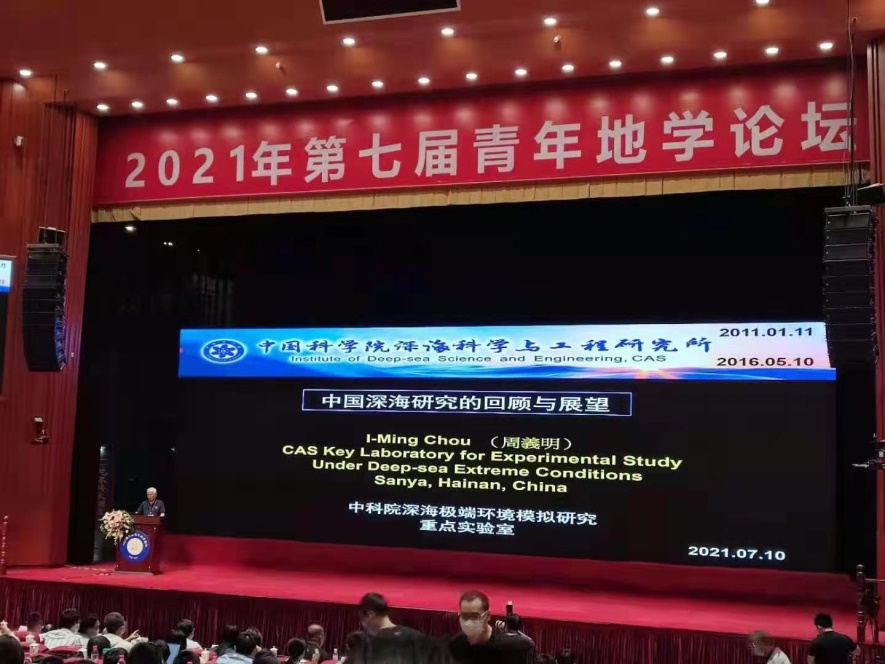 7月9-11日,中科院深海所深海極端環(huán)境模擬研究實驗室主任周義明研究員赴貴陽參加第七屆青年地學論壇,并受邀作題為“中國深海研究的回顧與展望”的大會報告。報告中,周義明講解了自己如何從臺灣到美國工作三十余年退休后再到中科院深海所所的求學、科研歷程。周義明向與會青年地球科學工作者介紹了深海所和深海極端環(huán)境研究實驗室的建立和現狀,也分享了自己一路見證中國在深海和外太空研究領域技術性的突破的珍貴經歷。