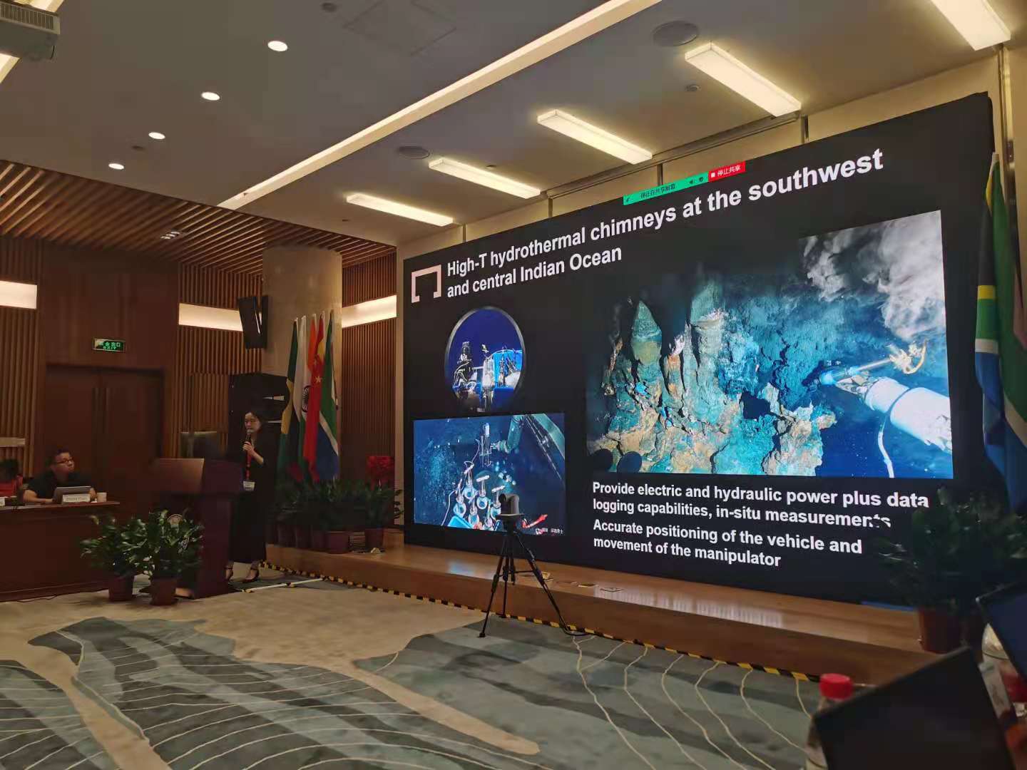 深海所科學部副主任張維佳副研究員代表深海所參會,并做題為“利用載人潛水器揭示深海未解之謎”會議報告。張維佳副研究員向與會代表詳細介紹了深海所當前載人深潛裝備條件、運維能力及依托載人深潛器開展深??瓶嫉男陆l現。通過與世界主要載人潛水器相應技術指標和運行能力對比,展現了我國“深海勇士”號、“奮斗者”號載人深潛器在深??瓶紤梅矫娴膶嵙退?。會上,深海所提出的依托載人深潛器聯合開展全球深淵深潛探索計劃的提議受到金磚國家熱烈響應。巴西、南非等國多家大學和科研機構,當即表達出對聯合科考強烈的合作意愿。