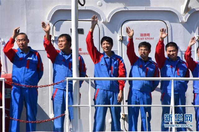 10月16日,參加第三次萬米深淵綜合科考任務(wù)的隊員向歡迎人群揮手致意 新華社記者 劉鄧 攝